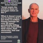 “Israel is a satanic state, and a lunatic society. Israel is the main cause of anti-Semitism in the world today…When Israelis see Benjamin Netanyahu, the bottom line is they see themselves, an obnoxious, self-righteous Jewish supremacist. That’s who the Israelis are. That’s who Benjamin Netanyahu is. So this notion that somehow he is the problem, no. If you look at the public opinion surveys, 50% of Israeli Jews say they support genocide in Gaza. It’s 50%. They were asked a very direct question. When the Israeli army goes into a city, the question was, when the IDF goes into a city, should it kill everybody in the city? 47% of Israeli Jews said yes. When they were asked in another survey, are there any innocence in Gaza? Remember, half of Gaza is children, okay, between 70 and 75% said, No Innocence in Gaza. That’s not Netanyahu. When they were asked whether they were concerned about starvation in Gaza? Over 80% said no.” – Professor, activist, and author, Norman Finkelstein