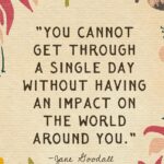 “We have become caught up in a materialistic and greedy world, so many of us. This has dire consequences for the future. It seems that there has been some disconnect between the clever mind and the human heart, love and compassion. And instead of making a major decision based on, ‘How will this affect generations ahead? How will this affect the world in the future when we’re not here?’ The criteria today are, ‘How will this decision affect me now, me and my family now? How will it affect the next shareholders meeting? How will it affect my next political campaign?’” – Jane Goodall
