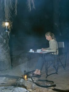 “Jane Goodall transcribing field notes by lamplight in Tanzania’s Gombe Stream National Park, circa 1960. Goodall never originally planned to go into science. Her passion was simply animals and observing them in the wild. When she began her fieldwork with chimpanzees in Gombe, her unconventional methods set her apart: she gave the chimps names like David Greybeard and Flo instead of numbers, and she described their personalities and relationships rather than treating them as identical data points. At the time, this was criticized by some scientists as “unscientific,” since the norm was to maintain strict detachment. Her mentor, Louis Leakey, however, saw the groundbreaking value of her observations and was so impressed that he petitioned Cambridge University to admit her directly into a PhD program, even though she didn’t have a bachelor’s degree. Though she had not intended to pursue science formally, the criticisms she faced pushed her toward the doctorate, which gave her the credibility to defend her work. In the end, her approach revolutionized primatology, reshaping how the scientific world understands animals as individuals with emotions, personalities, and complex social lives.” – History Cook Kids