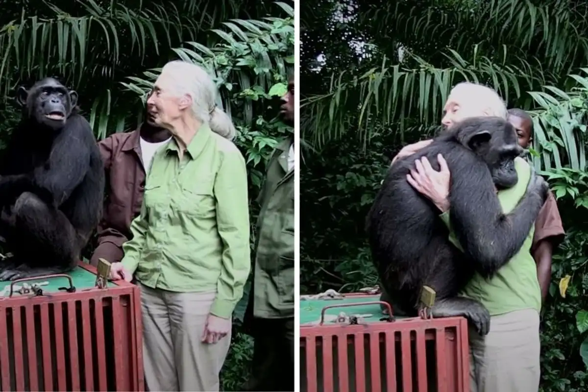 Click here for the video of Jane Goodall receiving a hug from Wounda.