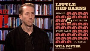 Activist and author, Will Potter, has written an excellent book titled, Little Red Barns, Hiding the Truth, from Farm to Fable. I was drawn to Mr. Potter’s work when I heard him talk about the intersectionality of factory farms, international climate summits, Congressional hearings, and neo-Nazi fascist groups. I was hoping that he would write about the connections between US hegemony, animal factories, and the US military industrial complex, but unfortunately, he chose not to go there. Perhaps that is why his book has received some positive reviews from legacy media outlets (e.g., the Washington Post, NY Crimes), as well as praise from many influential groups in the vegan movement such as Unchained TV, and Our Hen House (both organizations, like most in the vegan movement, have been SILENT or worse, on the genocide in Gaza). Still, it is an enlightening book that had me scribbling notes on nearly every page.