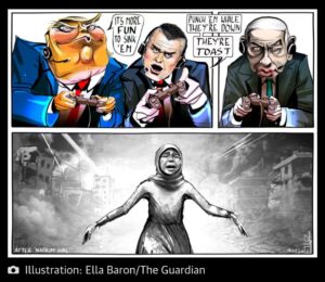 According to Pulitzer Prize winning author Chris Hedges, “The war on Iran and the obliteration of Gaza is the beginning. Welcome to the new world order. The age of technologically-advanced barbarism. There are no rules for the strong, only for the weak. Oppose the strong, refuse to bow to its capricious demands and you are showered with missiles and bombs. Hospitals, elementary schools, universities and apartment complexes are reduced to rubble. Doctors, students, journalists, poets, writers, scientists, artists and political leaders, including the heads of negotiating teams, are murdered in the tens of thousands by missiles and killer drones. Resources, as the Venezuelans know, are openly stolen. Food, water and medicine, as in Palestine, are weaponized. Let them eat dirt. International bodies such as the United Nations are pantomime, useless appendages of another age. The sanctity of individual rights, open borders and international law have vanished. The most depraved leaders of human history, those who reduced cities to ashes, herded captive populations to execution sites and littered lands they occupied with mass graves and corpses, have returned with a vengeance. They spew the same hypermasculine tropes. They spew the same vile, racist cant…They spew the same infantile language of total dominance and unrestrained violence. Killer clowns. Buffoons. Idiots. They have seized the levers of power to carry out their demented and cartoonish visions as they pillage the state for their own enrichment…We have witnessed evil for nearly three years in Gaza. We watch it now in Lebanon and Iran. We see this evil excused or masked by political leaders and the media. The New York Times, in a page out of Orwell, sent an internal memo telling reporters and editors to eschew the terms “refugee camps, “occupied territory,” “ethnic cleansing” and, of course, “genocide” when writing about Gaza. Those who name and denounce this evil are smeared, blacklisted and purged from university campuses and the public sphere. They are arrested and deported. A deadening silence is descending upon us, the silence of all authoritarian states. Fail to do your duty, fail to cheerlead the war on Iran, and see your broadcasting license revoked, as the Chair of the F.C.C. Brendan Carr has proposed. We have enemies. They are not in Palestine. They are not in Lebanon. They are not in Iran. They are here. Among us. They dictate our lives. They are traitors to our ideals. They are traitors to our country. They envision a world of slaves and masters. Gaza is only the start. There are no internal mechanisms for reform. We can obstruct or surrender. Those are the only choices left.”